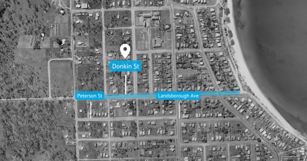 Long before it became the residential thoroughfare we know today, Donkin St had a far more modest beginning. An early map from around 1915 shows the street—then called Stuart Street—as little more than a short segment running between Mein Street and Landsborough Avenue. By 1921, the street had been extended to run through from Scarborough Road all the way to what would later become the Esplanade, reflecting the suburb’s evolution from scattered allotments to a more connected residential neighbourhood.